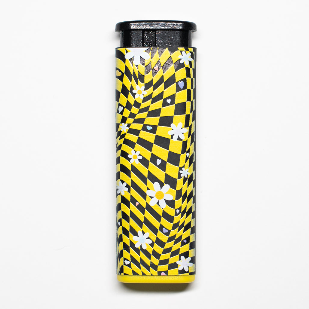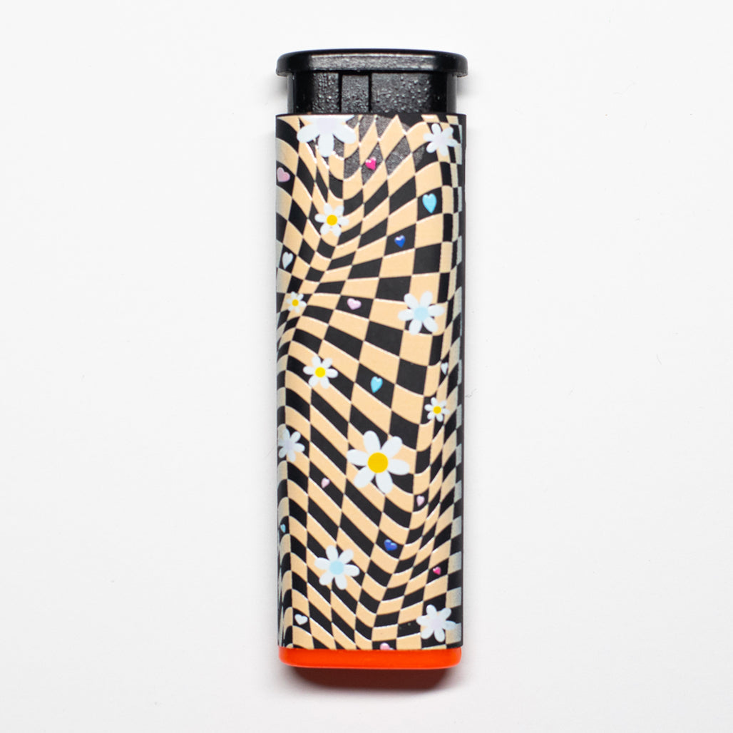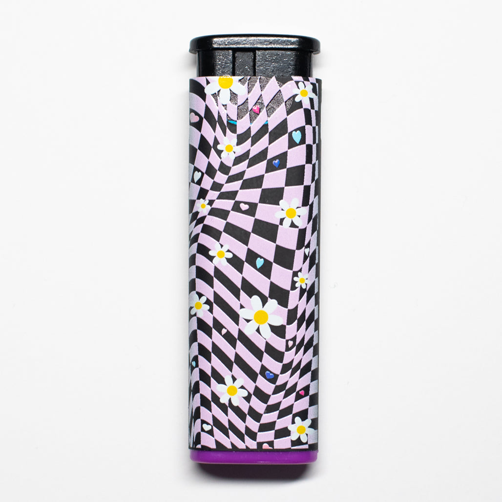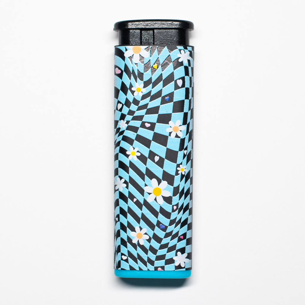 Comes with five, Daisy Printed Cannabitches Lighters, one in each rim color. The design is printed on both sides of each lighter.