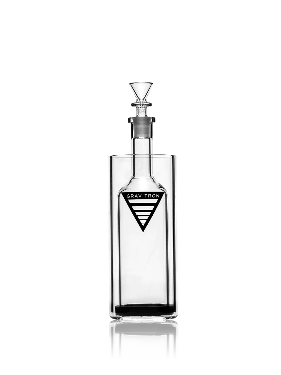 The Gravitron creates big, efficient hits through gravity and pressure. Start by filling the base halfway with water. Then pack the bowl with dry herb and insert it into the joint at the neck of the bottle. Light the bowl and lift the bottle at the same time. Once the bottle is full of smoke, remove the bowl and place your mouth over the neck, inhaling as you lower the bottle. The Gravitron will give you a dense, pressurized hit with no loss of smoke in the process.