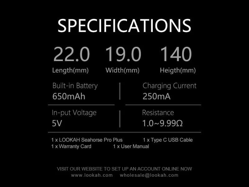 The battery is 650mAh which should see you through 10 to 15 dabs (depending on the mode and temperature settings) from each full charge. When it comes to charging, the Seahorse Pro Plus has a type C USB port, so there is no faffing with getting the cable the right way around.