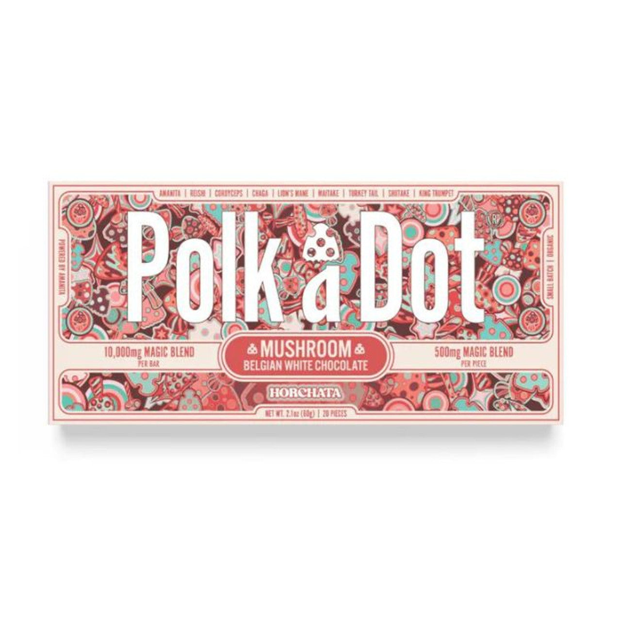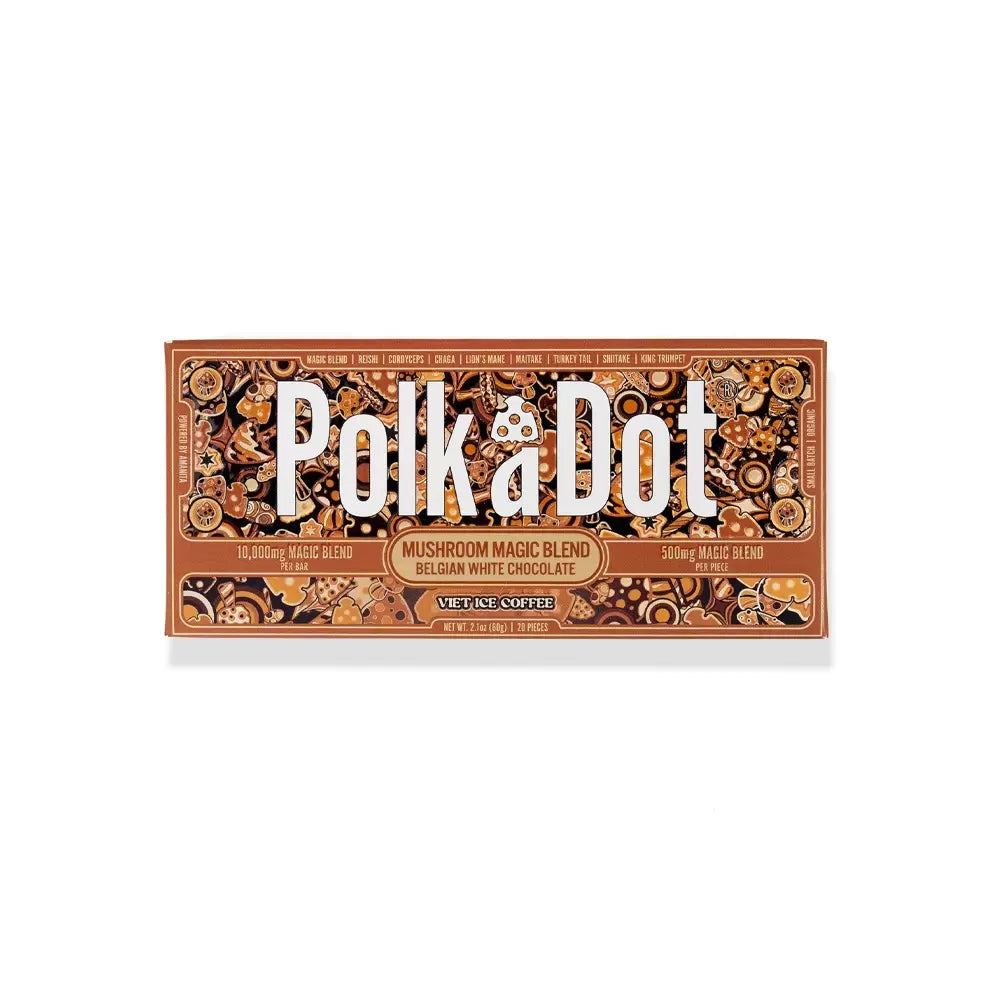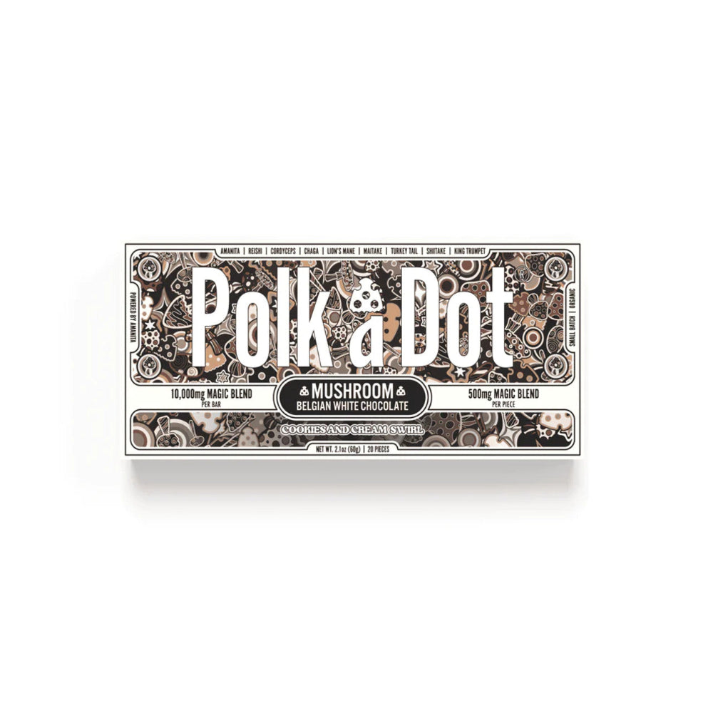 Experience the perfect blend of flavor and wellness with Polk A Dot x URB Mushroom Chocolate Bar. Each 2.1 oz bar boasts a potent 10,000mg magic blend of mushrooms, meticulously crafted into 20 delectable pieces. Indulge in the rich fusion of chocolate and a carefully selected mix of Amanita, Reishi, Cordyceps, Chaga, Lion’s Mane, Maitake, Turkey Tail, Shiitake, and King Trumpet mushrooms. Elevate your snacking with this mushroom chocolate bar – a delicious journey without psilocybin.
