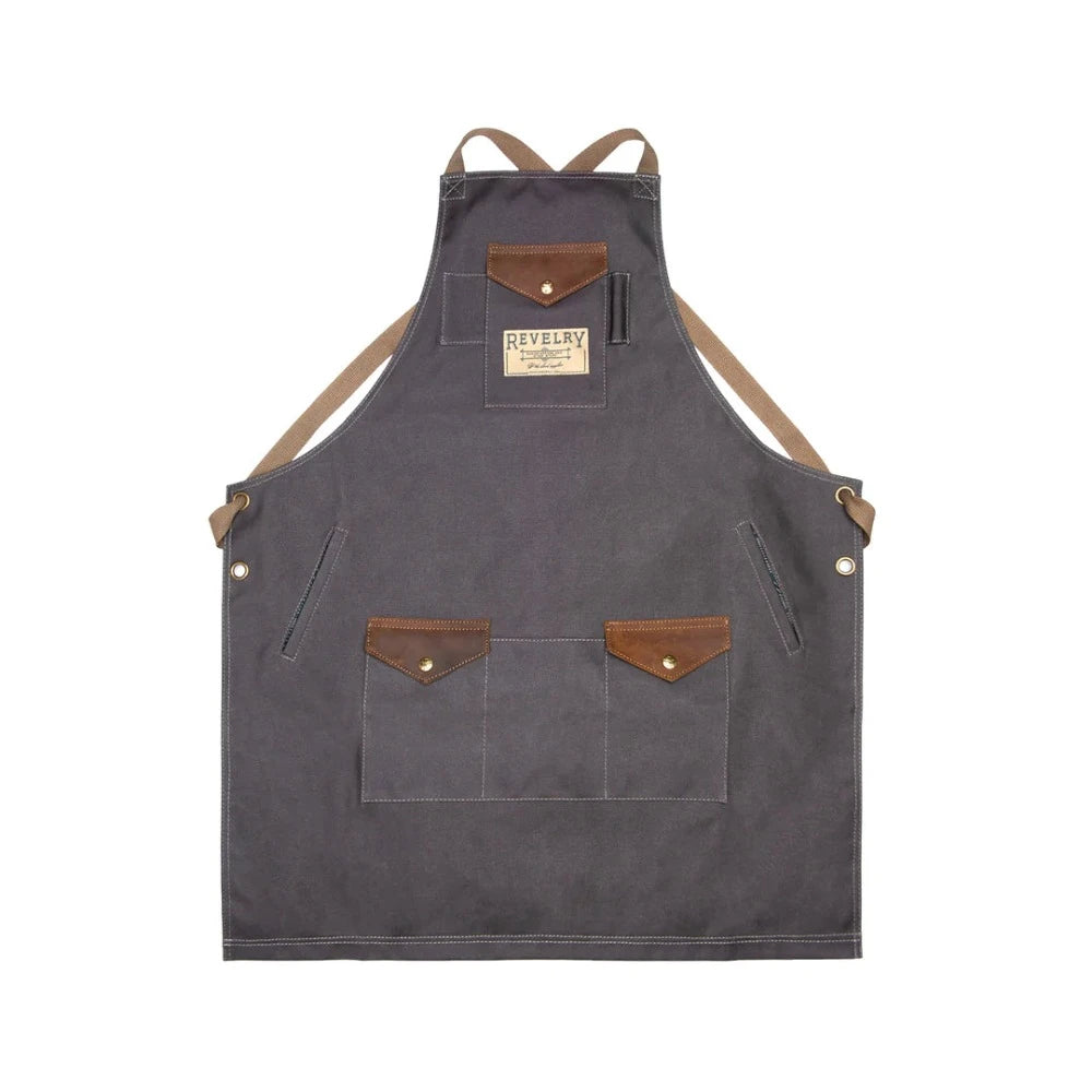 The Apron by Revelry – heavy-duty waxed canvas work gear with ample pockets. Crafted with custom lining, adjustable straps, and double grommets, it’s the ultimate companion. Featuring a knife holder, pen holder, inset side pockets, genuine leather accents, and metal hardware, The Apron combines functionality with style. Elevate your work experience – own this durable and practical apron now!