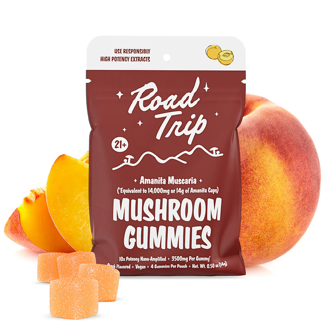 Amanita Mushroom gummies by Road Trip! Sure to be your favorite companion on your next adventure. These legal psychedelic gummies contain a 10x nano-amplified extract, which can be used for micro-dosing or a spiritual experience.